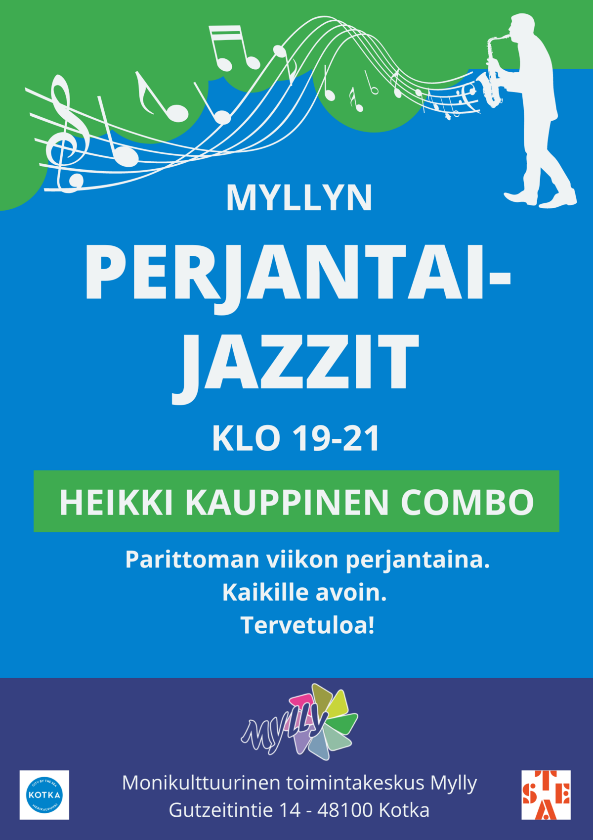 Heikki Kauppinen Combo viihdyttää jazzin ikivihreillä. Kaikille avoin ja maksuton. Myös kahvila on avoinna. Lämpimästi tervetuloa!